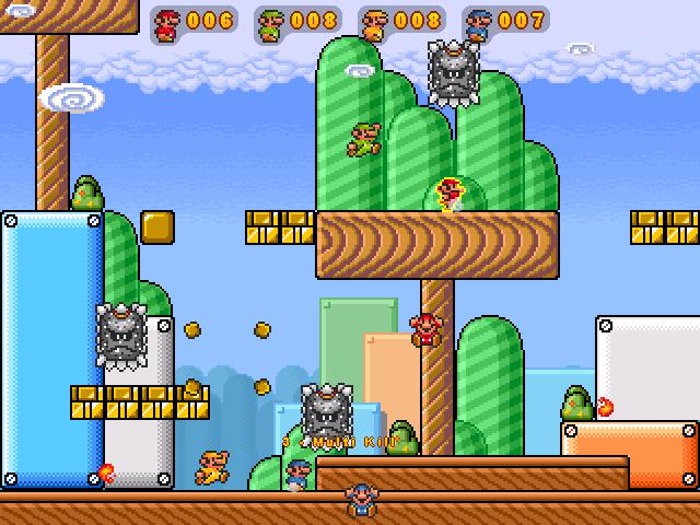 Super Mario War is a freeware platform-adventure video game released on December 16, 2006 for PC. The game centers on players fighting each other by one player jumping on the other player's head, or by making use of items which can be picked up during gameplay